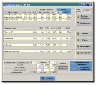 Praxiserprobtes, zielsicheres Berechnungsprogramm für optimale Betonrezepturen (Normalbeton, Schwerbeton, Hochfester Beton)