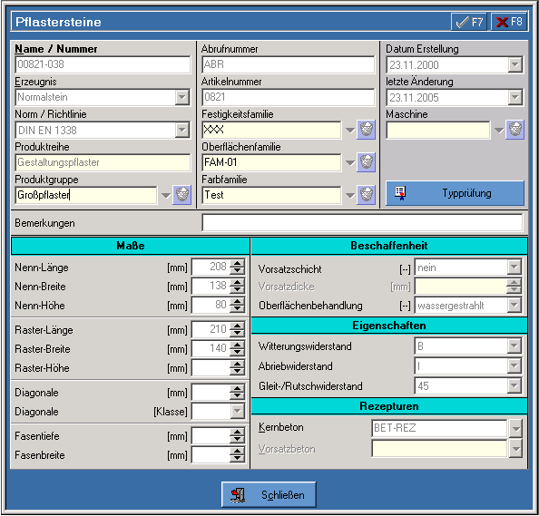 Das Gebiet Betonwaren ist als weitgehend eigenständiger Bereich innerhalb des COBET-Systems aufgebaut. Strukturell gleicht er dem